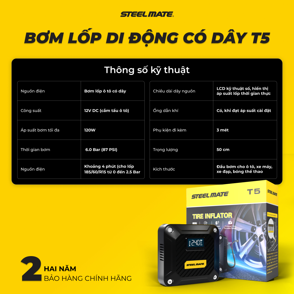 Với những ai chỉ cần bơm lốp, không có nhu cầu kích bình, Steelmate là thương hiệu được nhiều garage và tài xế tin dùng.