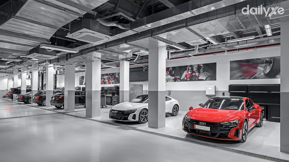 Đặc biệt, showroom Audi Tân Phú còn đầu tư 3 khoang sửa chữa dành riêng cho dòng xe điện Audi e-tron 1, e-tron 2 và e-tron 3. Tất cả những dịch vụ như sửa chữa, bảo dưỡng, đồng sơn, thay nhớt, sửa chữa khung sườn nhôm và các dịch vụ liên quan đến xe điện,... đều được thực hiện bởi đội ngũ kỹ thuật tay nghề cao, được đào tạo theo quy chuẩn sẵn có và có thể kết nối trực tiếp với trung tâm hỗ trợ kỹ thuật tại Đức và Singapore để được tham vấn thêm về xe điện. Đảm bảo cho xe sau khi sửa chữa, thay thế phụ tùng có thể vận hành an toàn và lâu bền.