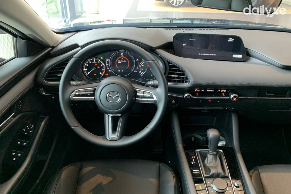 Mazda 3 có nội thất sang trọng với ghế da Nappa, màn hình giải trí 8.8 inch, điều hòa tự động 2 vùng, hệ thống âm thanh Bose cho bản Premium, thiết kế tối giản, tập trung trải nghiệm người dùng.