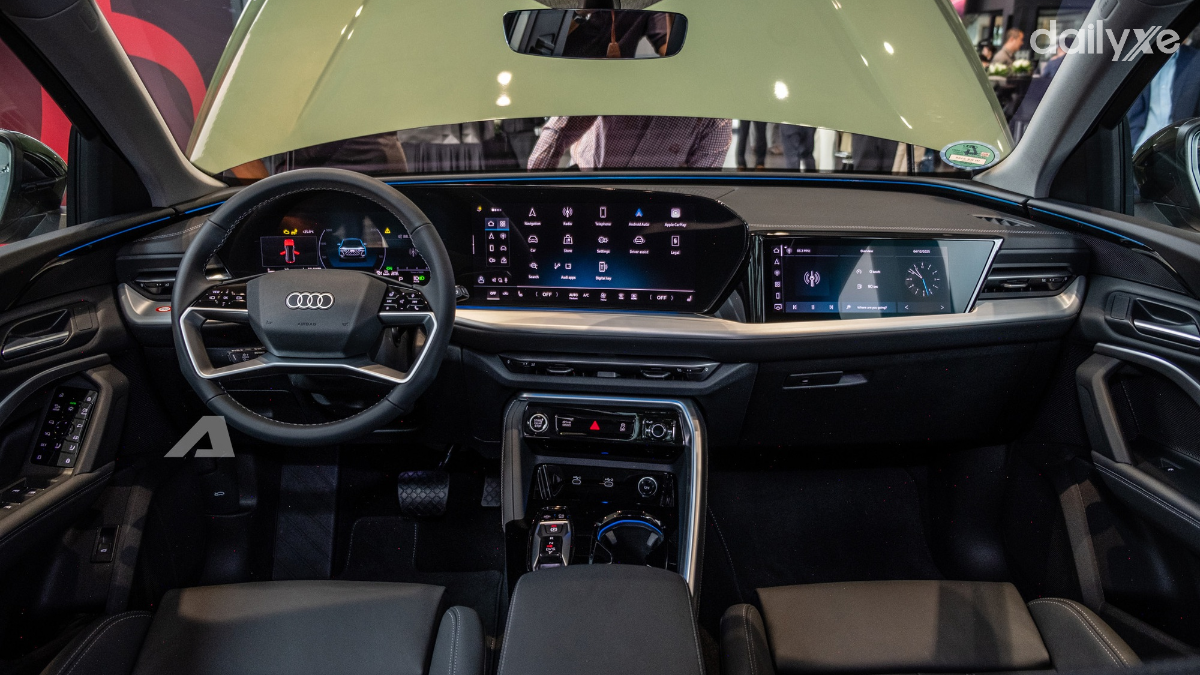 Khoang cabin của Audi Q5 2025 được thiết kế theo hướng tối giản nhưng hiện đại. Xe được trang bị ba màn hình gồm: bảng đồng hồ kỹ thuật số 11,9 inch, màn hình giải trí trung tâm 14,5 inch và tùy chọn màn hình phụ 10,9 inch cho hành khách phía trước.