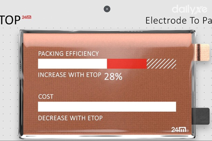24M Technologies, công ty công nghệ pin có trụ sở tại Massachusetts (Mỹ), vừa giới thiệu một giải pháp pin mới đầy hứa hẹn mang tên ETOP (Electrode-to-Pack) - công nghệ có thể giúp xe điện tăng tới 50% phạm vi hoạt động mà không cần mở rộng kích thước pin.
