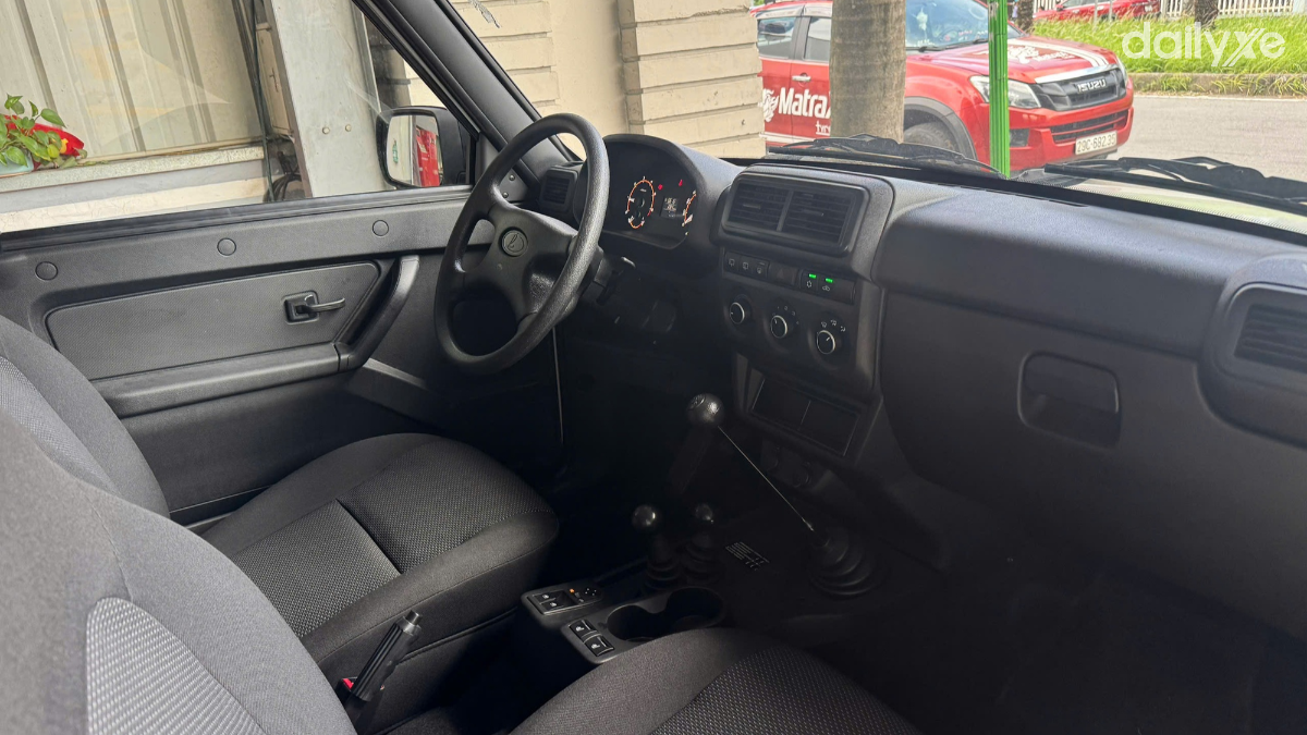 Bên trong, khoang lái được thiết kế mộc mạc, không chạy theo xu hướng hiện đại. Người dùng sẽ thấy vô lăng trơn, đồng hồ analog, điều hòa chỉnh cơ, phanh tay truyền thống và ghế nỉ. Chính sự giản dị này lại phản ánh đúng tinh thần bền bỉ và thực dụng vốn có của Niva.