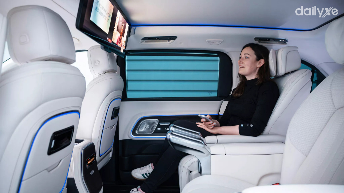Điểm nhấn lớn nhất nằm ở hệ thống MBUX Superscreen với ba màn hình trải dài trên bảng táp-lô phía trước. Hành khách phía sau cũng được phục vụ bởi màn hình panoramic 31,3 inch độ phân giải 8K có thể thu gọn vào trần xe, mang đến trải nghiệm giải trí tương tự khoang hạng nhất trên máy bay.