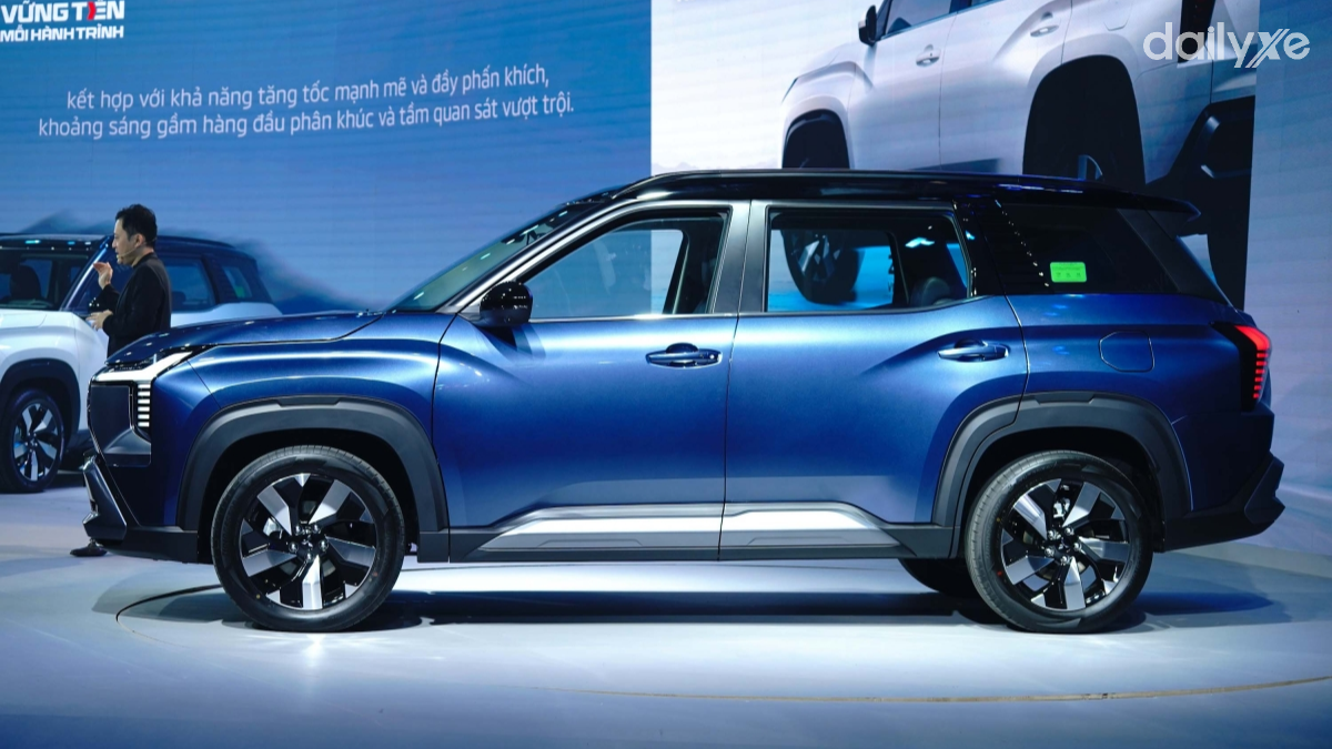 Thiết kế của Mitsubishi Destinator như một phiên bản phóng lớn của Xforce nhưng được nhấn mạnh nét nam tính và mạnh mẽ hơn. Xe sở hữu trục cơ sở 2.815 mm, vượt trội so với đa số đối thủ dùng động cơ đốt trong trong phân khúc (khoảng 2.700 mm), đồng thời chiều dài tổng thể cũng thuộc nhóm lớn nhất. Dù kích thước “đô” hơn, bán kính quay vòng chỉ 5.400 mm, nằm trong nhóm tốt nhất, giúp xe linh hoạt khi di chuyển ở không gian hẹp.