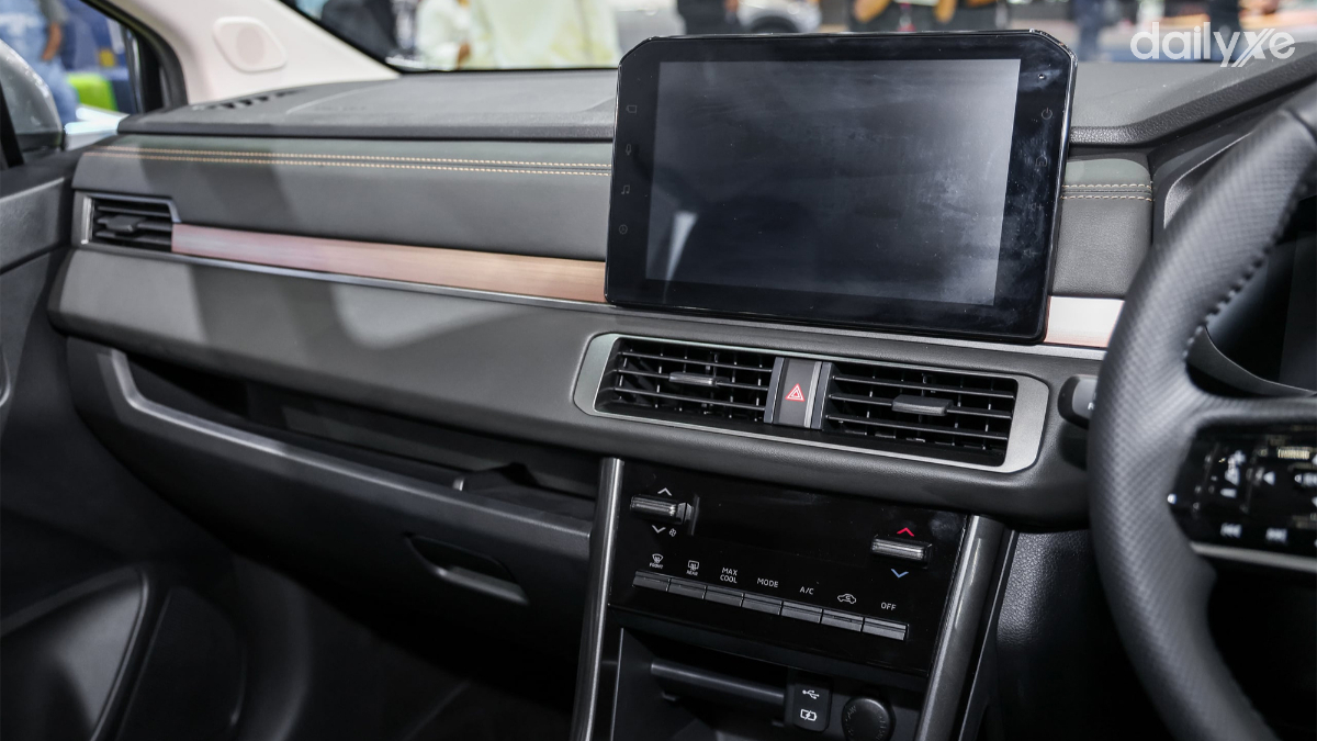 Không gian nội thất giữ phong cách quen thuộc nhưng được làm mới với ghế bọc da tổng hợp màu đen, kết hợp các chi tiết trang trí màu đồng tạo điểm nhấn tinh tế và hiện đại hơn cho cabin.