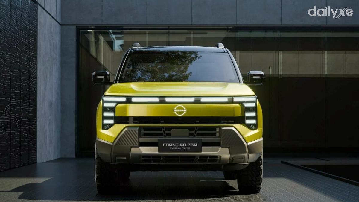 Dòng bán tải Nissan Frontier Pro được phát triển với hai tùy chọn hệ truyền động: thuần xăng và plug-in hybrid (PHEV). So với bản xăng, Frontier PHEV sở hữu thiết kế đầu xe mới hiện đại hơn, nổi bật với dải đèn định vị ban ngày LED liền mạch kết hợp ngôn ngữ tạo hình V-Motion đặc trưng của Nissan, mang lại diện mạo mạnh mẽ và hiện đại.