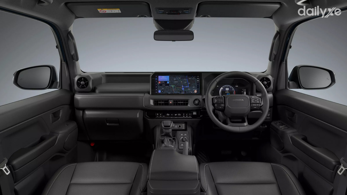 Khoang nội thất mang phong cách thực dụng, lấy cảm hứng từ dòng Land Cruiser với vô-lăng tròn, cụm đồng hồ kỹ thuật số, màn hình giải trí trung tâm lớn và các nút điều khiển điều hòa riêng biệt. Cần số và các núm chỉnh chế độ lái tập trung vào khả năng vận hành địa hình. Hàng ghế sau có thể trượt linh hoạt, tăng tính tiện dụng.