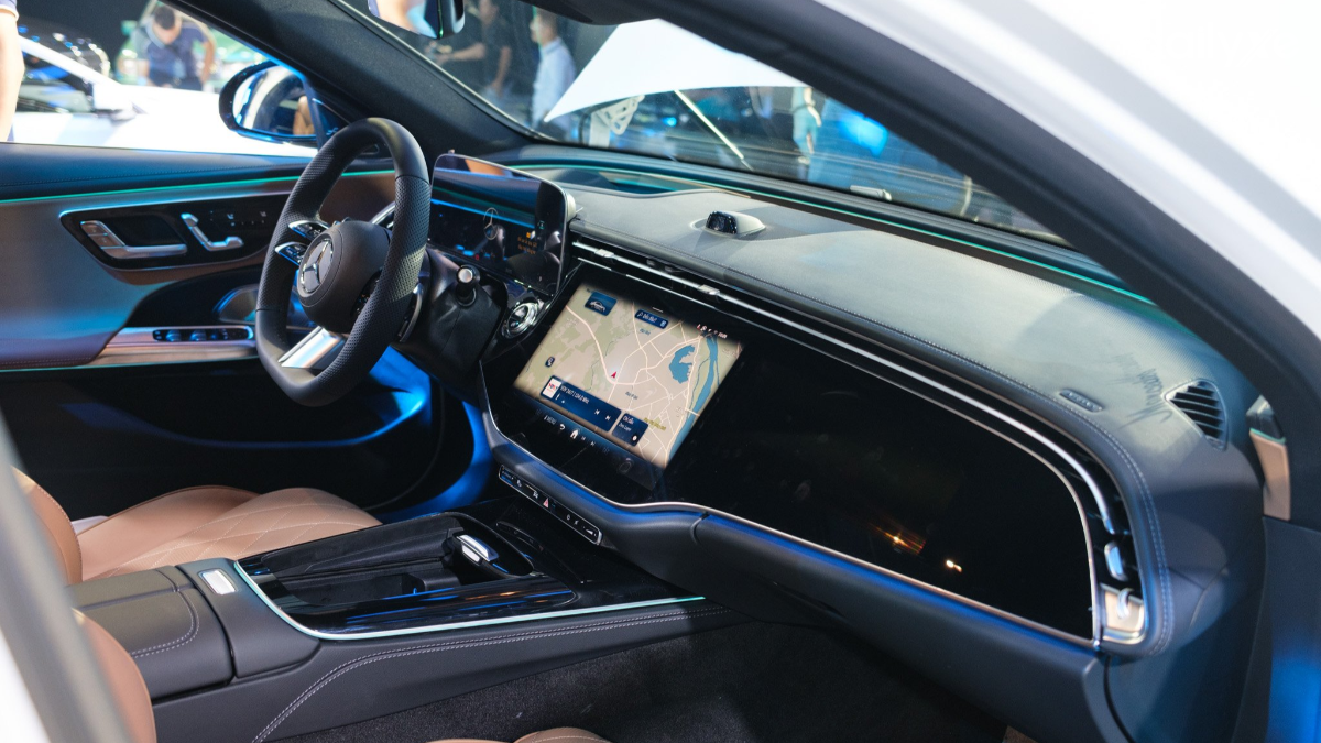 Bước vào cabin, E 300 AMG lột xác rõ rệt. Khu vực táp-lô được thiết kế lại hoàn toàn, với màn hình Hyperscreen siêu lớn thay thế cho cụm màn hình đôi truyền thống, mang đến cảm giác tương tự dòng S-Class.