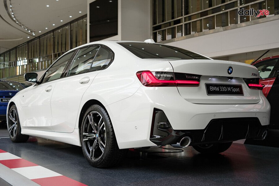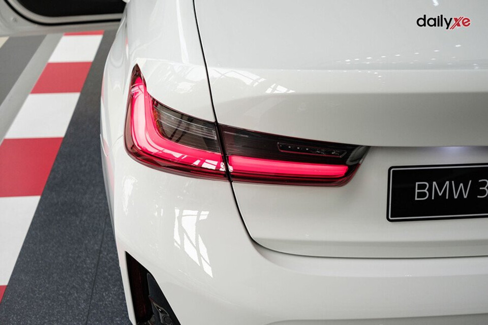Sau cùng là phần đuôi xe BMW 330i M Sport nổi bật với cụm đèn sau tích hợp dãy đèn LED 3D mờ cùng với thiết kế dạng chữ L với các đường cong mềm mại rất ấn tượng. Điểm nhấn chính là đèn tín hiệu báo rẽ dạng thanh mảnh nổi bật thiết kế kéo dài về phía chiều rộng của xe mang lại cho xe phong cách thể thao.