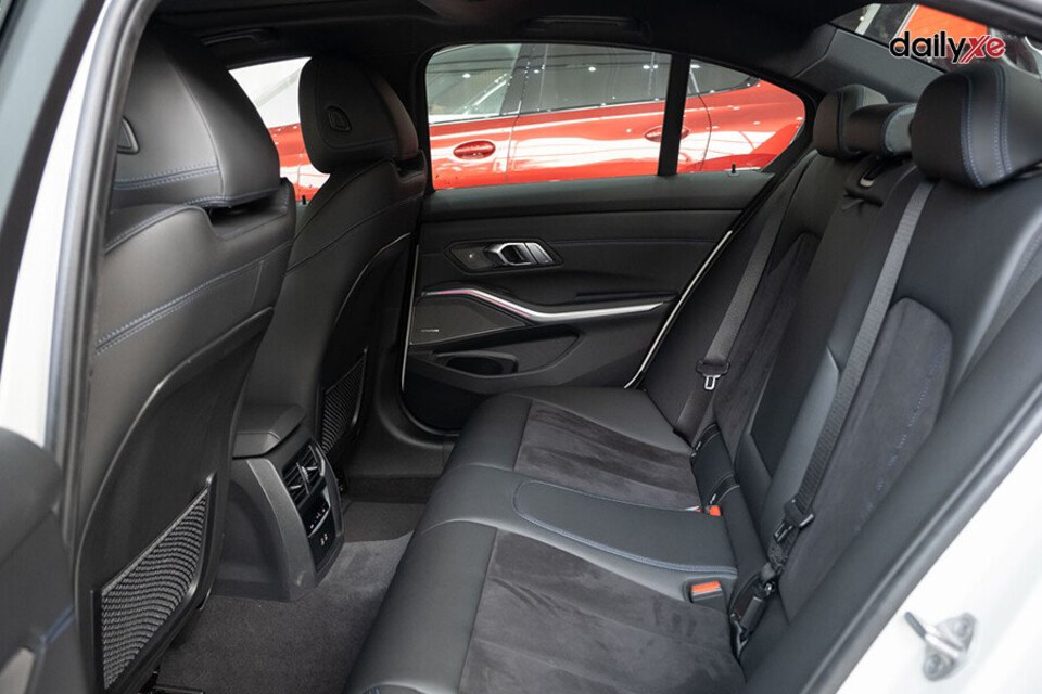 Về chất liệu ghế ngồi, tương tự như BMW 320i M Sport thì ở bản 330i M Sport sử dụng ghế ngồi thể thao bọc da “Alcantara phối Sensatec” màu đen với điểm nhấn tới từ đường chỉ may màu xanh.