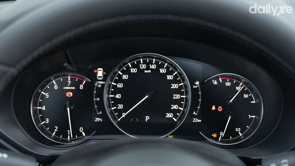 Phía sau vô lăng được trang bị cụm đồng hồ trung tâm kết hợp giữa analog và kỹ thuật số, hiển thị đầy đủ các thông số quan trọng giúp người lái có thể nắm bắt tình trạng xe khi vận hành mà không cần phải rời mắt khỏi hành trình.