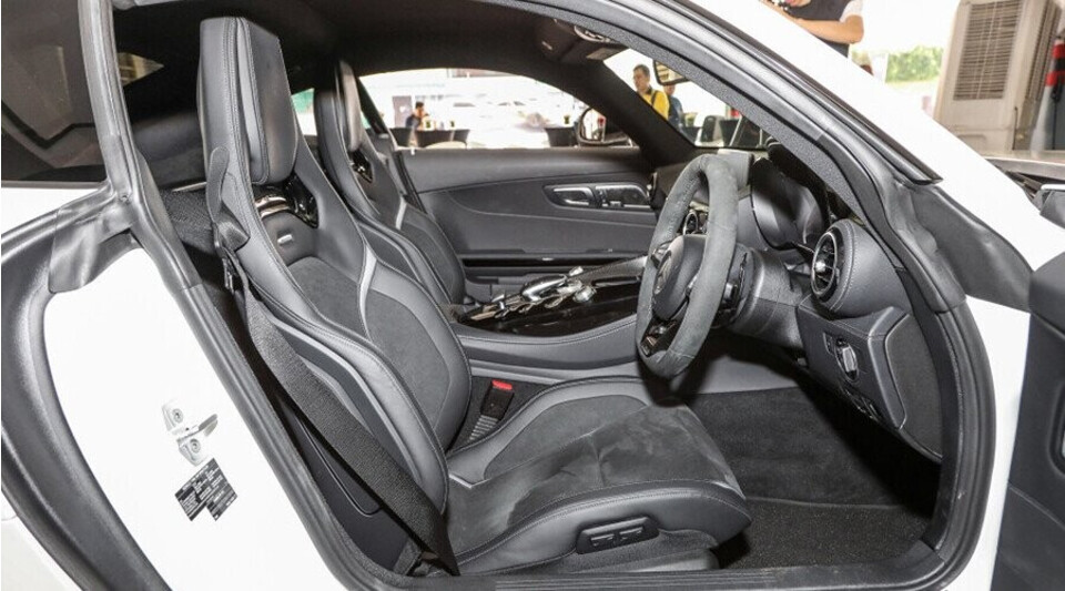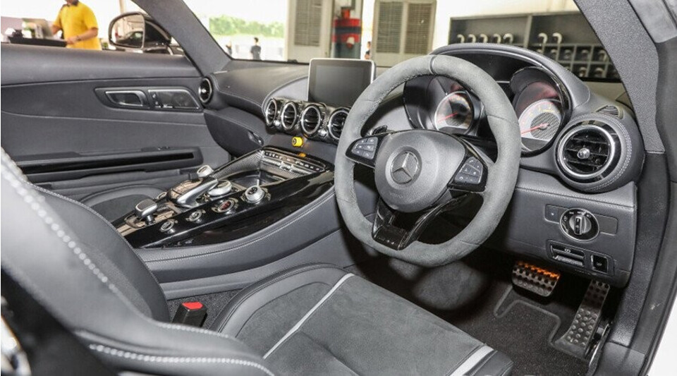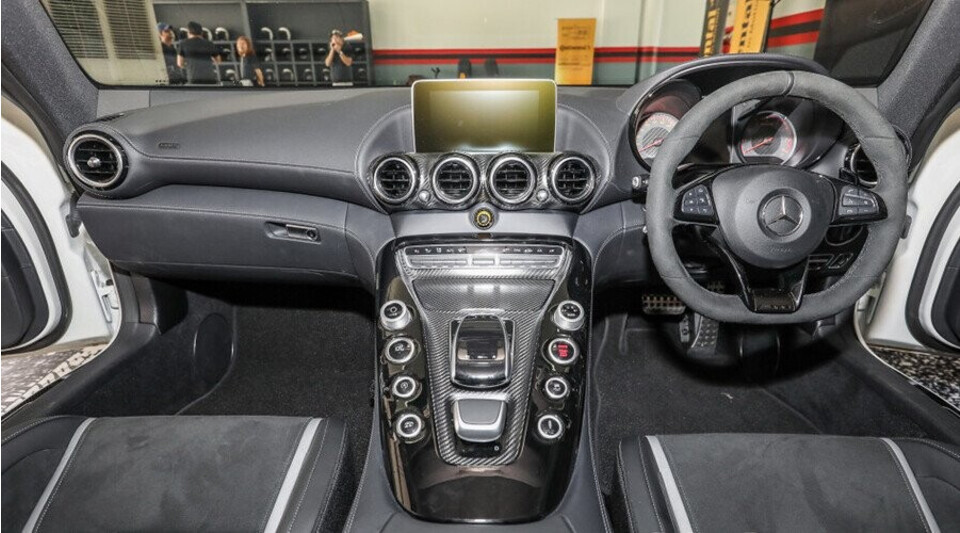 Bước vào khoang cabin Mercedes-AMG GT R, các ghế ngồi của AMG GT R là loại siêu nhẹ và được bọc da Nappa sang trọng. Thiết kế vô lăng thể thao AMG bọc sợi cao cấp DINAMICA với nút điều khiển cảm ứng và nút điều khiển riêng biệt cho xe AMG. Mặc dù AMG GT R là xe thể thao, nhưng vẫn được trang bị khá nhiều tiện nghi như: dàn âm thanh Burmester 10 loa, công suất 640W, hệ thống giải trí COMAND Online với màn hình 10.25-inch hay kết nối Apple Carplay/Android Auto...