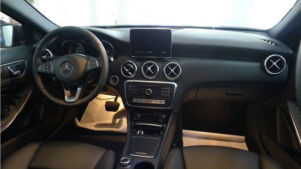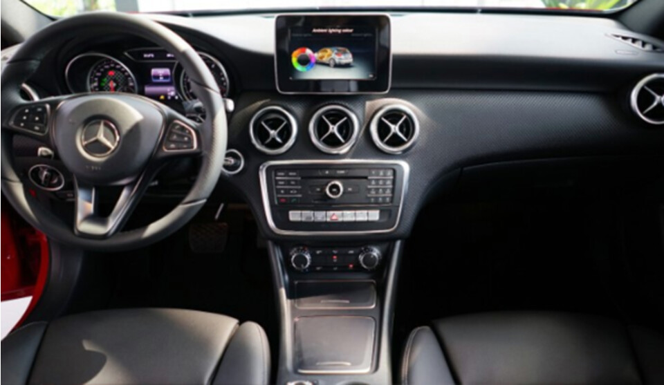 Gói trang bị nội thất Exclusive đặc trưng với hệ thống đèn viền trang trí mười hai màu sắc, tay lái ba chấu thế hệ mới và thiết kế cụm đồng hồ mới với màn hình đa chức năng bao nổi bật trong nội thất thượng hạng của chiếc Mercedes-Benz A.