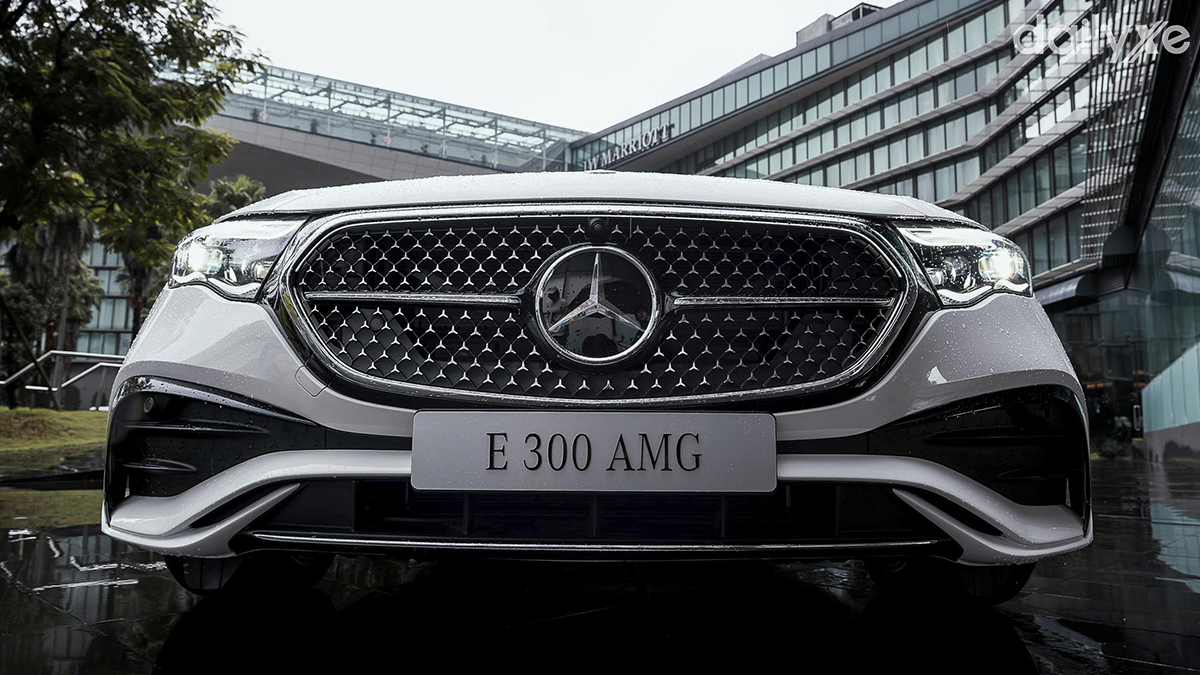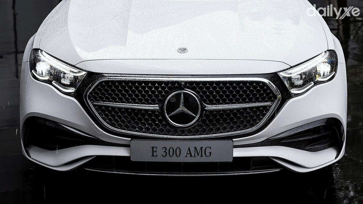 Cuối cùng là E300 AMG đậm chất thể thao với trang bị lưới tản nhiệt thanh thoát với hoạ tiết kim cương lung linh phối với một thanh chrome chạy ngang đính logo tạo điểm nhấn, tương tự mẫu xe đàn em Mercedes C Class dòng C300 AMG.