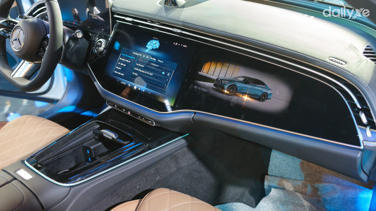 Chi tiết đắt giá nhất ở khoang lái E-Class là màn hình kép có kích thước lớn 12.3 inch liền mạch gồm màn hình kỹ thuật số và màn hình giải trí cảm ứng. Đây là trang bị hứa hẹn dễ dàng chinh phục những tín đồ công nghệ.