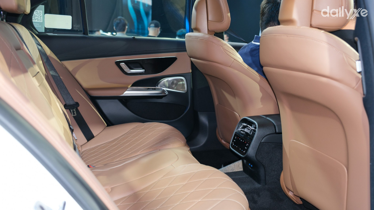 Hàng ghế sau trên E-Class còn được trang bị rèm che nắng chỉnh điện cho cửa sổ phía sau và rèm che nắng chỉnh cơ cho 2 cửa sổ sau bên hông. Từ đó giúp đảm bảo sự riêng tư, đồng thời giúp khoang cabin được làm mát tốt hơn. Trang bị 2 cổng USB Type-C cho hàng ghế sau.