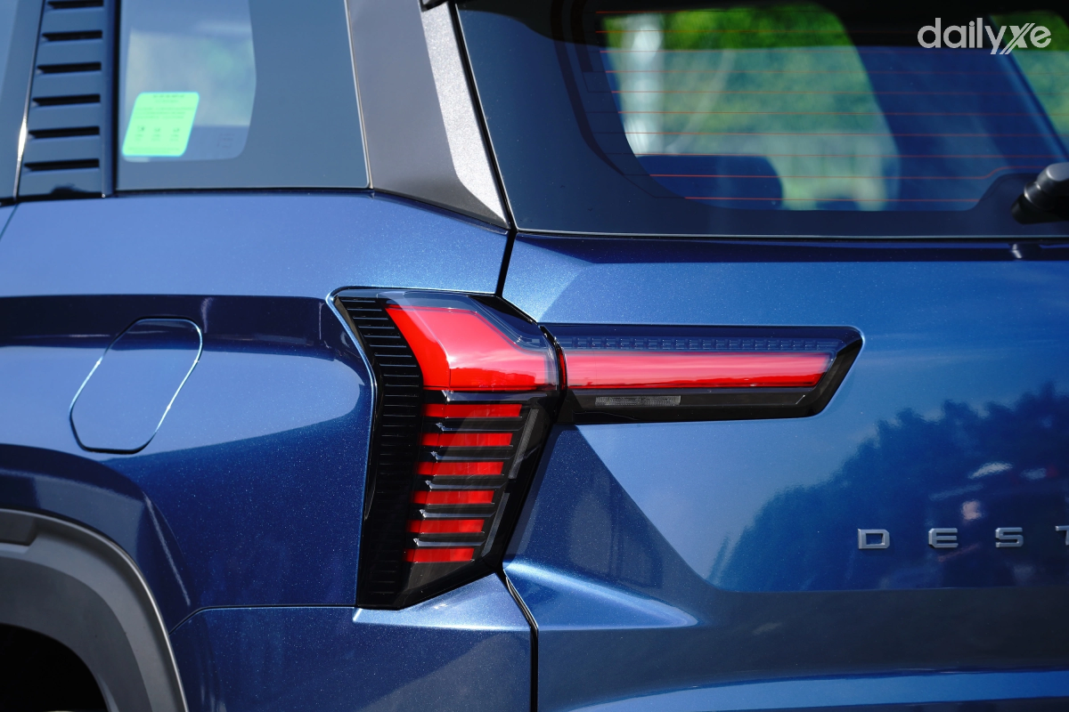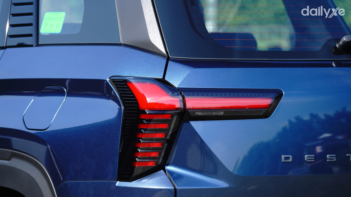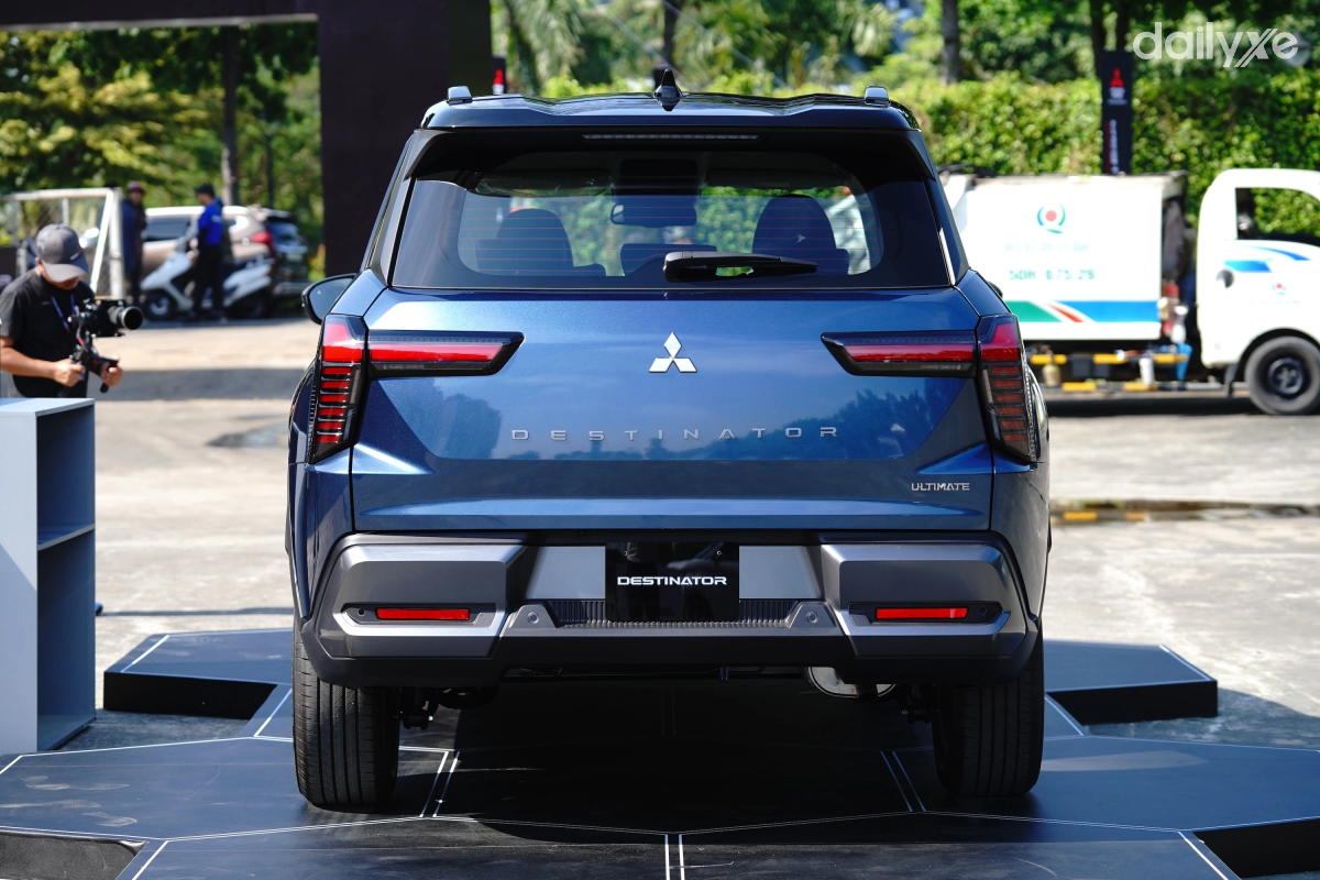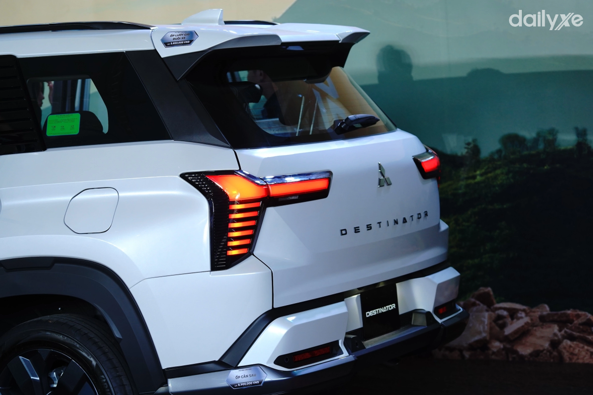 Mitsubishi Destinator Ultimate sở hữu cụm đèn hậu LED tạo hình chữ T, giúp phần đuôi xe trở nên vững chãi và bề thế hơn, đồng thời bảo đảm sự đồng bộ với ngôn ngữ thiết kế ở khu vực đầu xe. Cản sau được mở rộng, kết hợp ốp màu tối cùng ăng-ten vây cá sơn đồng màu thân xe, qua đó làm nổi bật phong cách SUV mạnh mẽ và chắc chắn.