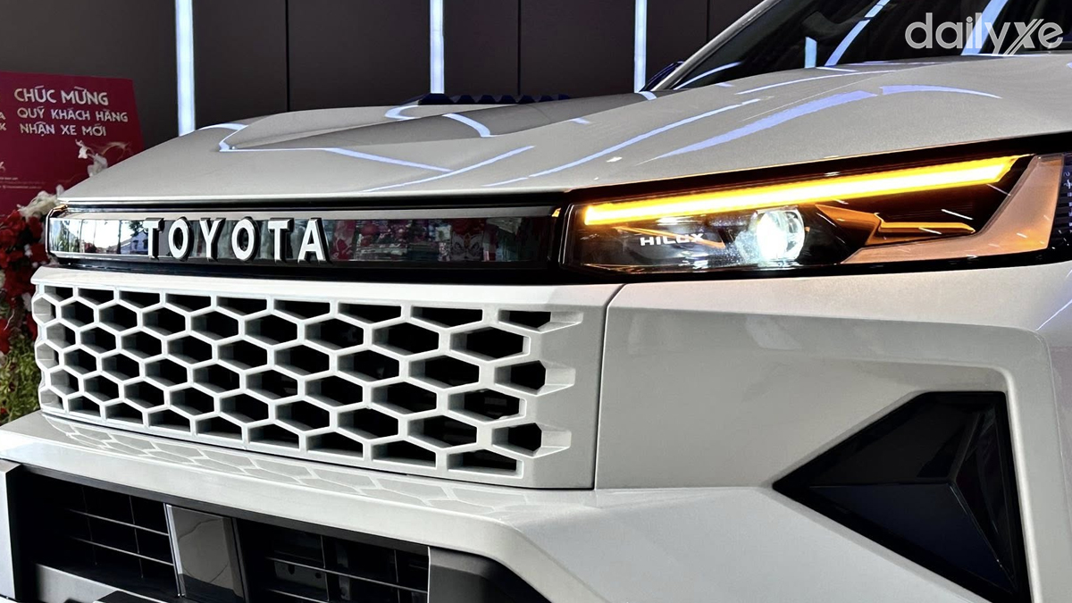 Phần đầu xe nổi bật với lưới tản nhiệt hình thang kích thước lớn kết hợp họa tiết tổ ong, tạo nên diện mạo khỏe khoắn và thể thao. Ngoại thất Hilux thế hệ mới thay đổi rõ nét ở khu vực đầu và đuôi xe, trong khi thân xe vẫn giữ phong cách quen thuộc.