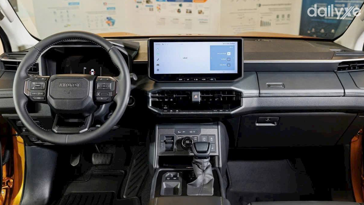 Khoang nội thất Toyota Hilux 2026 được làm mới toàn diện so với thế hệ trước, với ngôn ngữ thiết kế hiện đại và cứng cáp hơn, gợi nhiều liên tưởng đến Land Cruiser Prado.