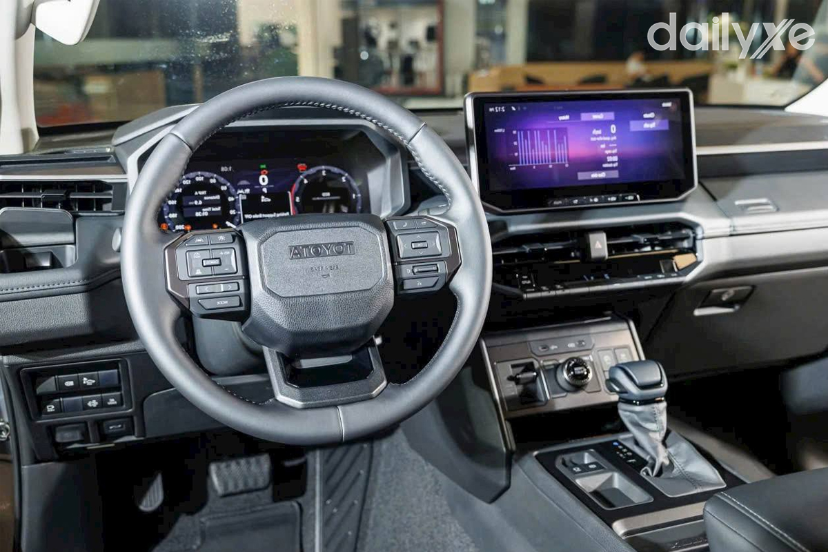 Đáng chú ý, cụm phím bên phải trên vô-lăng của phiên bản Trailhunter cho phép điều khiển đầy đủ các tính năng thuộc gói hỗ trợ an toàn Toyota Safety Sense (ADAS), bao gồm cảnh báo tiền va chạm, cảnh báo chệch làn đường, hỗ trợ giữ làn, điều khiển hành trình thích ứng và đèn chiếu xa tự động. Ngoài ra, xe còn được trang bị camera 360 độ, cảm biến đỗ xe trước/sau; riêng hệ thống hỗ trợ đổ đèo chỉ xuất hiện trên bản Trailhunter.