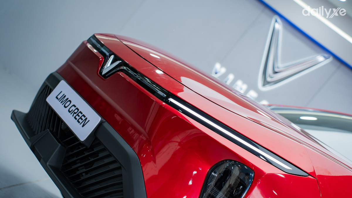 Thiết kế đầu xe thể hiện rõ DNA VinFast với logo chữ V đặc trưng cùng hai đường gân dập nổi trên nắp capo. Nổi bật là hệ thống đèn LED hình cánh chim ở cả phía trước và sau, tích hợp khả năng điều chỉnh độ cao thông minh.