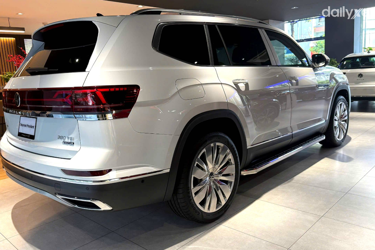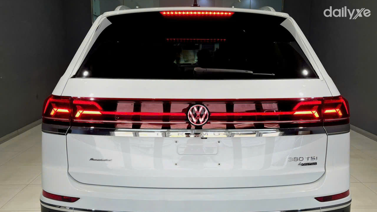 Nhìn từ phía sau, Volkswagen Teramont President gây ấn tượng với phần đuôi xe đầy đặn và thiết kế gọn gàng nhưng không kém phần mạnh mẽ. Cụm đèn hậu LED được trau chuốt tỉ mỉ, ôm trọn hai bên hông sau và nổi bật lên khi bật sáng, vừa tăng cường độ chiếu sáng vừa giúp xe dễ dàng nhận diện trên đường.