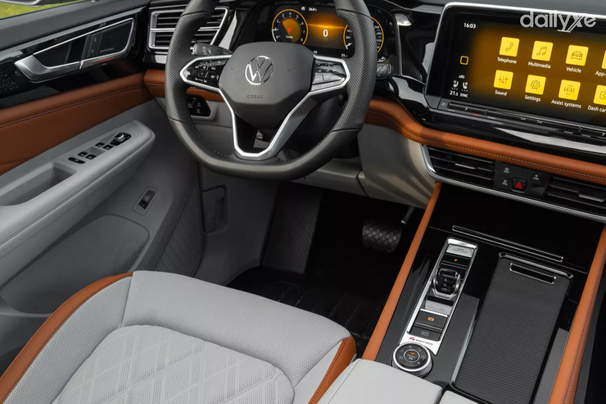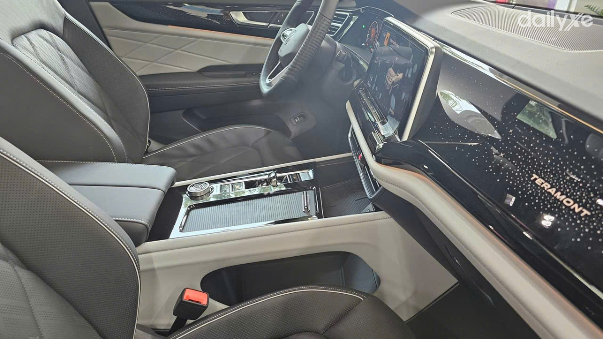 Không gian bên trong Volkswagen Teramont President rộng rãi cho những chuyến đi thư thái và đẳng cấp. Mọi thứ được bài trí hài hòa, tạo cảm giác thoáng đãng ngay từ cái nhìn đầu tiên. Dù phong cách thiết kế khá đơn giản, nhưng chính sự tối giản ấy lại mang đến nét tinh tế, hiện đại đặc trưng của xe Đức.