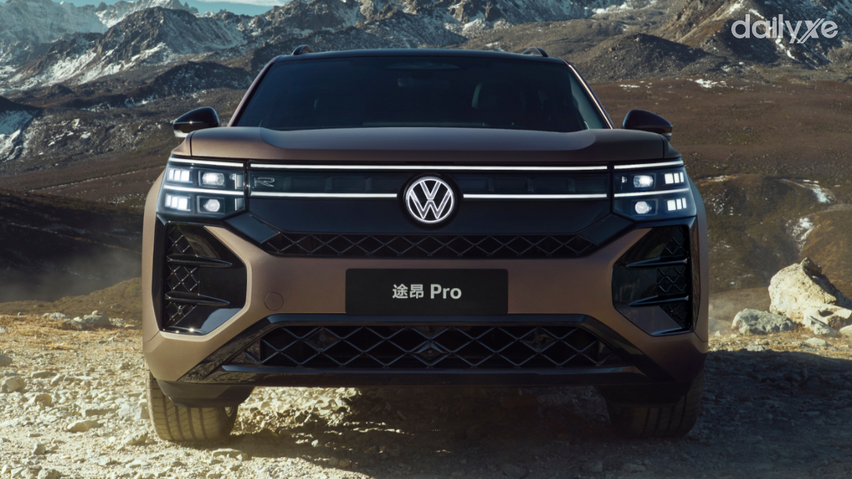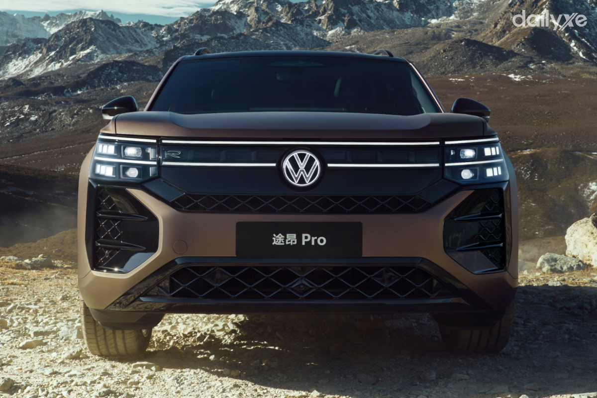 Ở phần đầu xe, Teramont Pro Max mang đậm dấu ấn thiết kế đặc trưng của Volkswagen, với nhiều đường nét gợi liên tưởng đến người anh em Volkswagen Tiguan. Các đường gân nổi trên nắp ca-pô tạo cảm giác chắc chắn, khỏe khoắn. Lưới tản nhiệt cỡ lớn gồm ba thanh ngang mạ chrome sáng kết hợp logo VW đặt trung tâm, vừa tăng độ nhận diện vừa mang lại vẻ sang trọng.