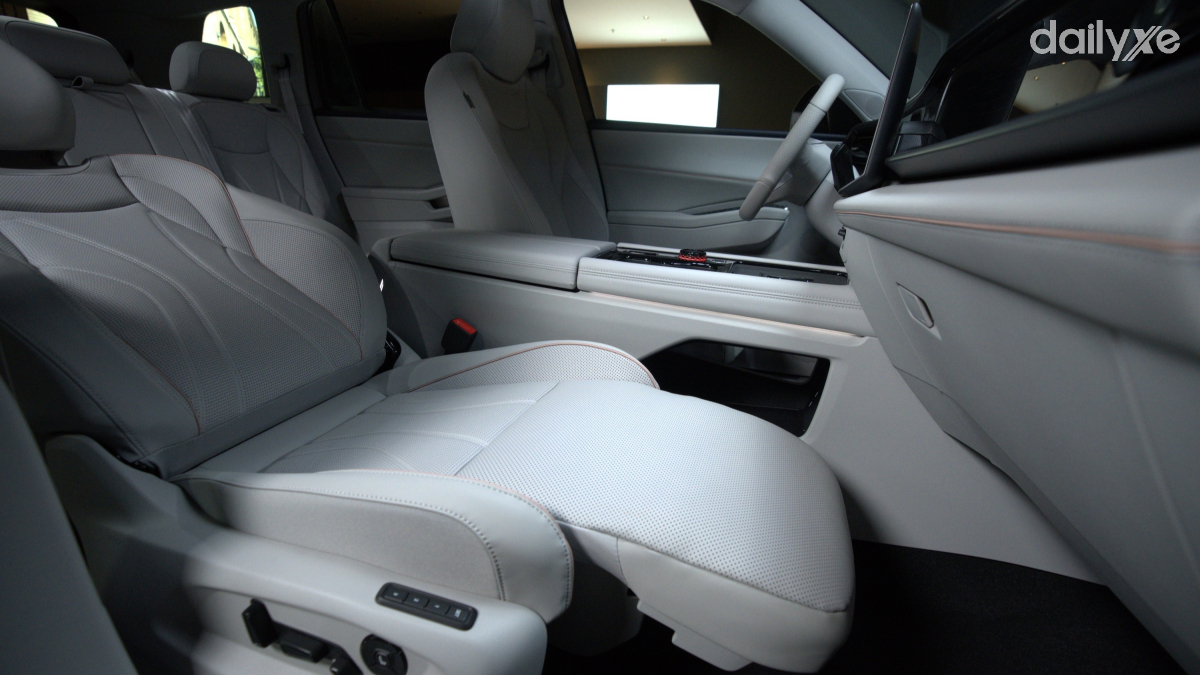 Ghế lái bọc da cao cấp, chỉnh điện 10 hướng, hỗ trợ tối ưu tư thế ngồi. Hàng ghế thứ hai rộng rãi, tích hợp ba vị trí ISOFIX cho ghế trẻ em. Cơ chế trượt và gập linh hoạt giúp việc tiếp cận hàng ghế thứ ba dễ dàng hơn.