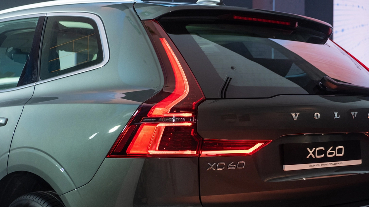 Phần đuôi của Volvo XC60 Ultra nổi bật với cụm đèn hậu LED hình chữ “L” đặc trưng, có kích thước lớn giúp tăng độ nhận diện khi di chuyển trong đêm tối. Thiết kế ống xả được khéo léo giấu kín, tạo nên vẻ liền mạch cho tổng thể đuôi xe.