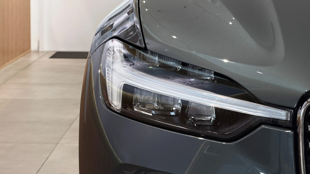 Phần đầu xe gây ấn tượng với lưới tản nhiệt đặc trưng gồm các thanh nan dọc mạ chrome, trung tâm là logo Volvo nổi bật cùng thanh chéo biểu tượng. Đèn Full LED thông minh đi kèm dải LED ban ngày hình búa Thor, đặc trưng không thể nhầm lẫn của thương hiệu Thụy Điển, được thiết kế sắc sảo, ứng dụng công nghệ LED thích ứng tiên tiến.