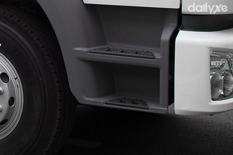 Ngoài bệ bước chân lên xuống, bạn cũng có thể dễ dàng ra vào khoang cabin cùng phần cánh cửa mở rộng lên đến 90 độ. Kính cửa xe điều chỉnh bằng điện, bổ sung thêm hệ thống treo cabin 4 điểm kết hợp các gối đỡ và giảm chấn thủy giúp triệt tiêu tối đa rung chấn, lái xe êm ái, thoải mái hơn đặc biệt là những cung đường dài.